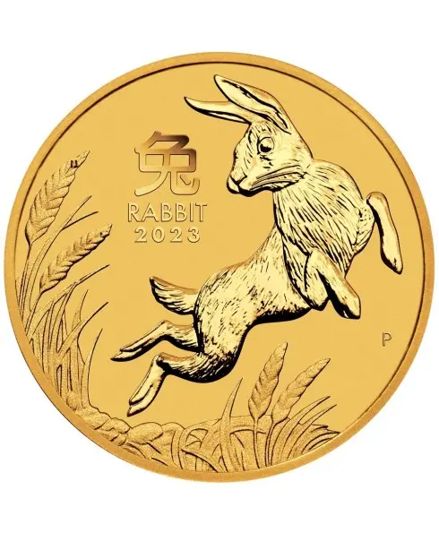 Embrace the auspicious Year of the Rabbit with the 2023 Perth Mint Year of the Rabbit 2 oz Gold Coin. This exquisite coin is meticulously crafted from two ounces of 99.99% pure gold, making it a prestigious addition to any collection. The coin features a captivating design honoring the rabbit, symbolizing prosperity, longevity, and good fortune. On the obverse side, you'll find the portrait of Her Majesty Queen Elizabeth II, while the reverse side showcases the intricate rabbit motif. Each coin comes with a certificate of authenticity from the Perth Mint, ensuring its purity and quality.