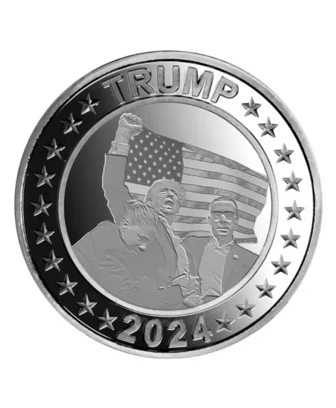 Whether you like Trump or not, this round captures a piece of history. This assassination would and could have been a pivotal moment in history. The "2024 Donald Trump Assassination Attempt 1 oz Silver Round" captures a piece of that moment. The date was July 13th, 2024, when Donald Trump, running for the 47th President of the United States, survived an assassination attempt. The round portrays Trump being and Secret Service agents from a Pennsylvania rally, bloodied from a gunshot to his right ear, raising his fist with an American flag waving in the background.