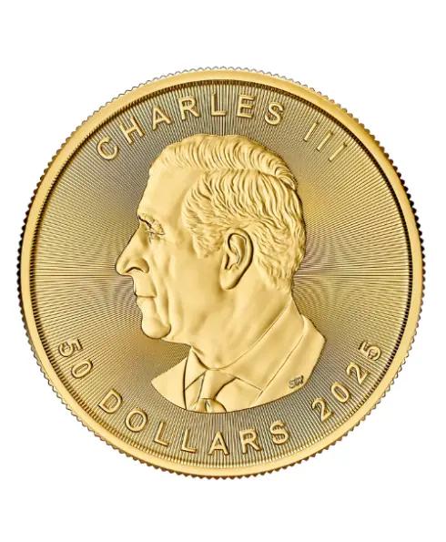 The 2025 Canadian Maple Leaf 1 oz Gold Coin is a beautiful testament to Canada’s rich heritage and commitment to producing pure, high-quality gold coins. Struck by the Royal Canadian Mint from 99.99% pure gold, this coin features the iconic maple leaf design that’s celebrated worldwide for its precision and elegance. With Queen Elizabeth II’s effigy replaced by King Charles III, the 2025 Maple Leaf marks a new chapter in the series, making it a unique addition to any collection. Each coin is meticulously crafted, blending tradition with innovation and guaranteeing both visual appeal and investment value.