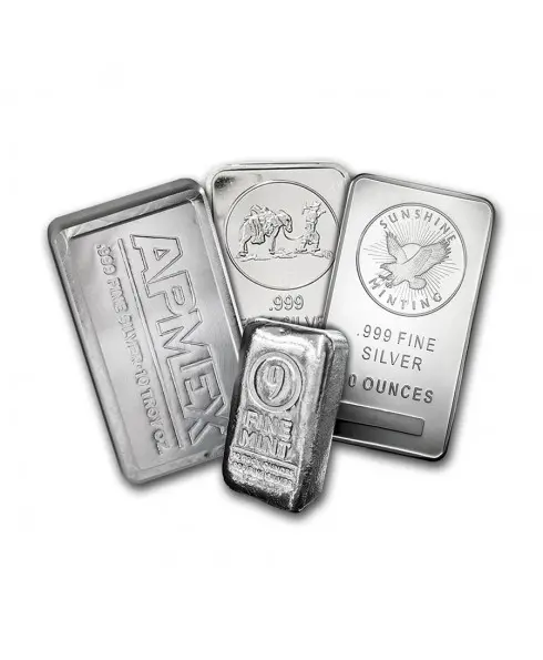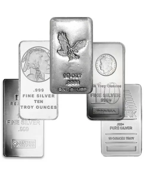 Presenting the Assorted Brand 10 oz Silver Bars – a diverse collection of finely crafted silver ingots that encapsulate the essence of investment-grade precious metals.